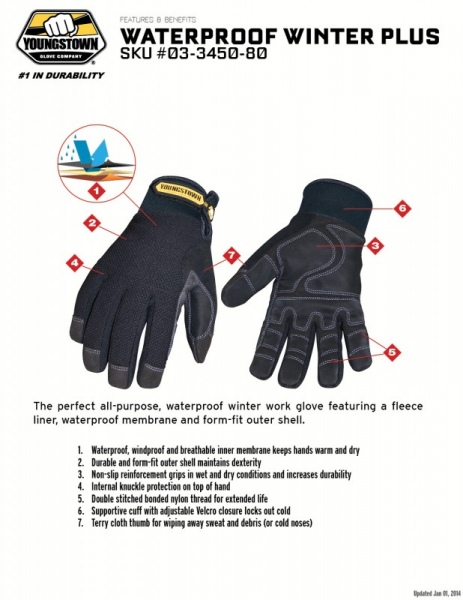 The Winter plus model is the perfect all-purpose, waterproof winter work glove featuring a fleece liner, waterproof membrane and form-fit outer shell.